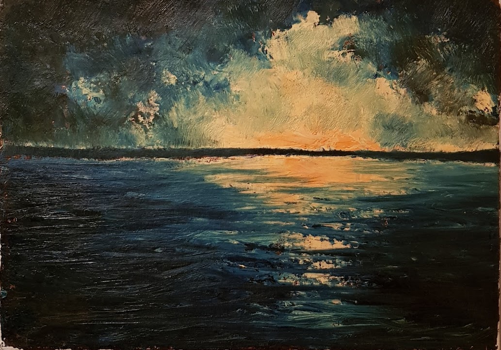 "EI väriä ei taivasta, vain uppoavaa ainesta" (55x35) Akryyli kankaalle. 2021.